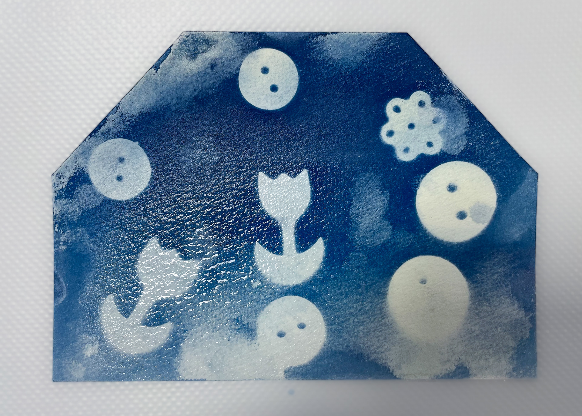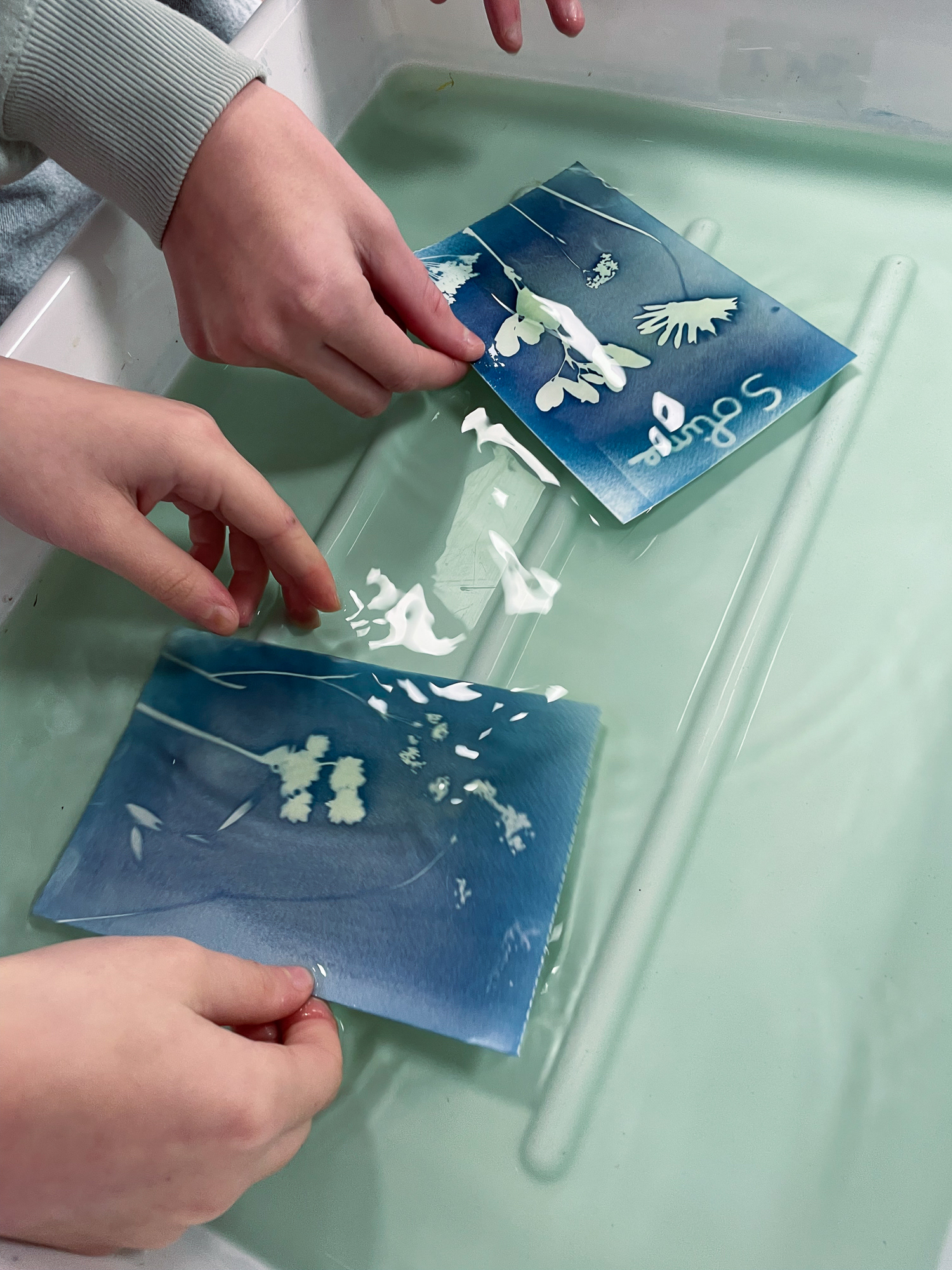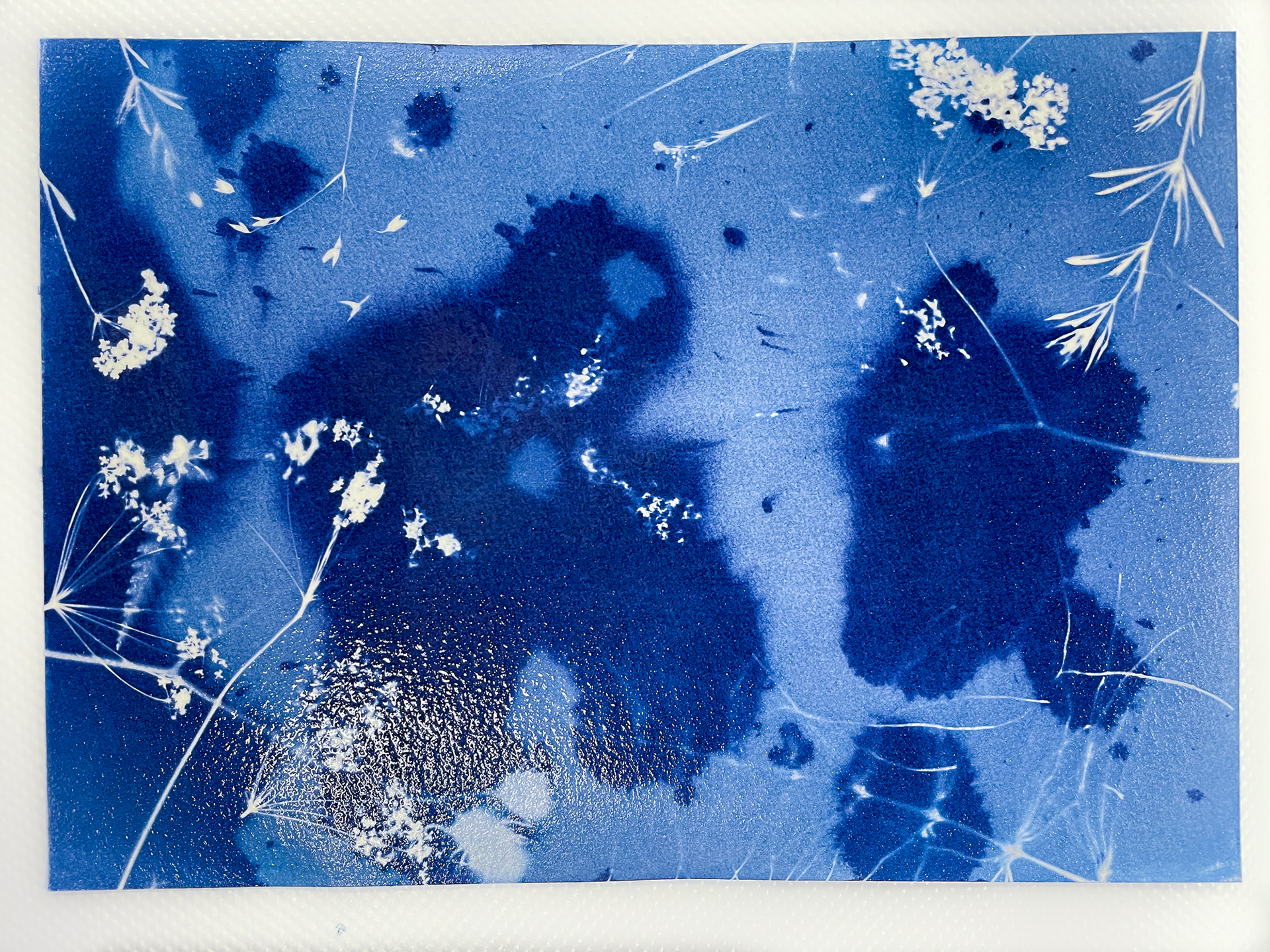 Dans le cadre de mon exposition à la Micro-Folie de Falaise, j’ai animé plusieurs ateliers invitant les participant·es à découvrir la magie du cyanotype, une technique photographique ancienne permettant de créer des images sans appareil photo.